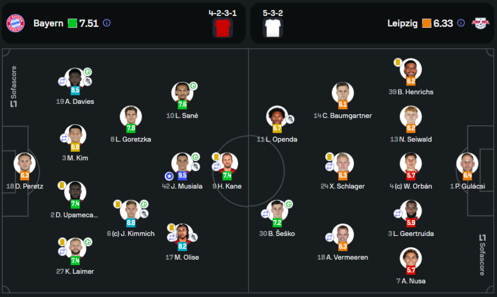 จามาล มูเซียล่า คือผู้เล่นที่โดดเด่นที่สุดในเกมนี้ ด้วยคะแนน 9.5 จากการยิง 1 ประตูและทำแอสซิสต์ 1 ครั้ง พร้อมบทบาทสำคัญในทุกการบุกของทีม