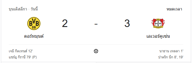 นาทีที่ 96: จบเกม เลเวอร์คูเซินเอาชนะดอร์ทมุนด์ไปด้วยสกอร์ 3-2