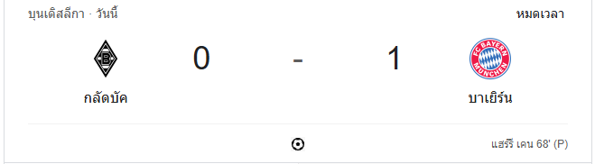 นาทีที่ 90+3: จบเกม บาเยิร์น มิวนิค เก็บสามแต้มสำคัญจากการเอาชนะโบรุสเซีย มึนเช่นกลัดบัค 1-0