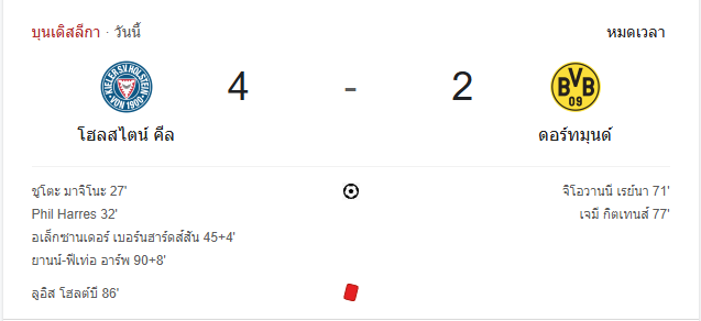 นาทีที่ 100: กรรมการเป่านกหวีดจบเกม โฮลสไตน์ คีล ชนะ โบรุสเซีย ดอร์ทมุนด์ 4-2 อย่างเด็ดขาด