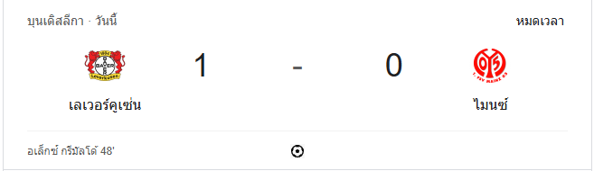 นาทีที่ 94: ผู้ตัดสินเป่านกหวีดจบเกม เลเวอร์คูเซ่นเฉือนชนะไมนซ์ 1-0