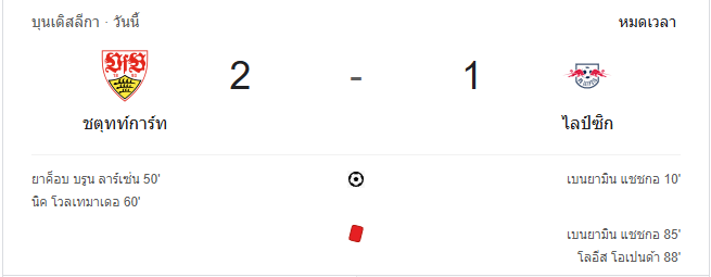 นาทีที่ 96: กรรมการเป่านกหวีดจบเกม สตุ๊ตการ์ทเปิดบ้านชนะไลป์ซิก 2-1 ในเกมที่ดุเดือดและเต็มไปด้วยจังหวะการทำฟาวล์