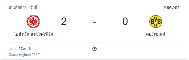 แฟร้งค์เฟิร์ตฟอร์มเดือด อัดดอร์ทมุนด์ 2-0 ศึกบุนเดสลีกา 2024