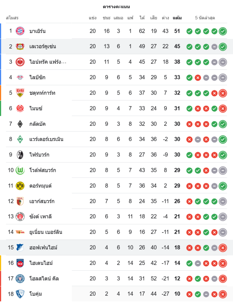 หลังจบเกมนี้ ไบเออร์ เลเวอร์คูเซิน รั้งอันดับ 2 ของตาราง มี 45 คะแนน ไล่ตามจ่าฝูง บาเยิร์น มิวนิค อยู่เพียง 6 คะแนน ส่วนฮอฟเฟนไฮม์ยังคงจมอยู่ในโซนล่างของตาราง อันดับ 15 มี 18 คะแนน ต้องเร่งฟอร์มเพื่อหนีโซนตกชั้น