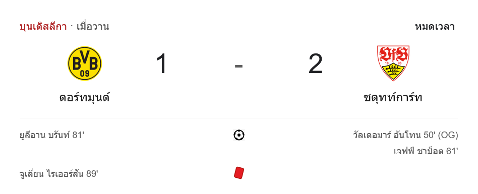 จาก : ผลบอลสด บุนเดสลีกา 2024 ระหว่าง โบรุสเซีย ดอร์ทมุนด์ 1-2 สตุ๊ตการ์ต วันนี้ 8/2/68 – บ้านกีฬา