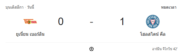 • นาทีที่ 48 กรรมการเป่าหมดครึ่งแรก อูนิโอน เบอร์ลิน 0-1 โฮลสไตน์ คีล