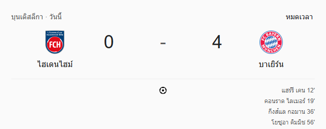 - จบการแข่งขัน: บาเยิร์น มิวนิค บุกถล่มไฮน์เดนไฮม์ 4-0 อย่างสวยหรู