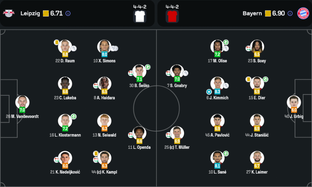 บาเยิร์นของวินเซนต์ ก็องปานี เริ่มต้นด้วยความล่าช้าในการขึ้นเกม แต่เมื่อปรับรูปแบบการเล่นด้วยการเติมมิดฟิลด์ตัวรุกอย่างโอลิสเซ่และนาบรี้ลงลึก กลับทำให้ทีมมีความไหลลื่นขึ้น การประสานงานในแดนหน้าเฉียบขาดในช่วง 20 นาทีสุดท้าย สร้างความปั่นป่วนให้แนวรับไลป์ซิกอย่างหนัก อย่างไรก็ตาม แนวรับของเสือใต้ยังคงมีช่องโหว่โดยเฉพาะลูกตั้งเตะและการปิดเกม