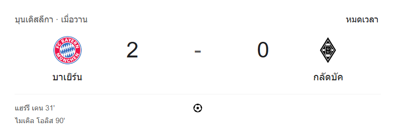- จบเกม: บาเยิร์น มิวนิค 2-0 โบรุสเซีย มึนเช่นกลัดบัค