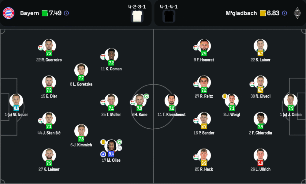- กองกลาง: โจชัว คิมมิช, ลีออน โกเร็ตซ์ก้า, ไมเคิล โอลีส (⚽ 90′), โธมัส มุลเลอร์, คิงส์ลี่ย์ โกม็อง