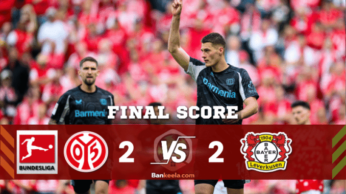 เกมที่เต็มไปด้วยอารมณ์และจังหวะพลิกไปพลิกมา ศึก บุนเดสลีกา เยอรมัน นัดนี้ “ช่างไม้” เอฟเอสเฟา ไมนซ์ 05 เปิดบ้านรับมือ “ห้างขายยา” ไบเออร์ เลเวอร์คูเซิน ในค่ำคืนที่แฟนบอลสาย ผลบอลสด ต้องลุ้นจนนั่งไม่ติด! จบเกมทั้งสองทีมแบ่งแต้มกันแบบสุดมัน 2-2 มีทั้งจุดโทษสองฝั่ง, ประตูจาก VAR, ลูกยิงดุเดือด และความตึงเครียดทุกวินาที