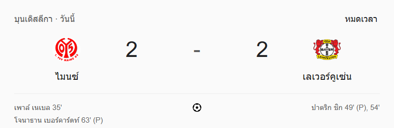 แม้เลเวอร์คูเซินจะมีชื่อชั้นและสถิติที่เหนือกว่า แต่ไมนซ์ก็แสดงให้เห็นว่าพวกเขาไม่กลัวใครในบ้าน เกมนี้มีทั้งจุดโทษ, VAR, ลูกสวย และอารมณ์เดือดทุกระยะ เกมที่แฟน ผลบอลสด ต่างพูดถึงว่า “มันจัดเต็ม” ที่สุดเกมหนึ่งในฤดูกาลนี้