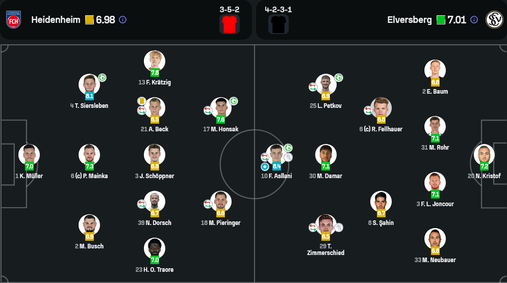 เกมนี้ ไฮน์เดนไฮม์ใช้แผน 3-5-2 ที่เน้นการเติมเกมริมเส้นและพยายามใช้การครองบอลเหนือกว่า (56%) กดดันแนวรับของเอลเวอร์สเบิร์กให้พลาด โดยเฉพาะในครึ่งหลังที่เกมบุกเข้มข้นขึ้นหลังการเปลี่ยนตัว จังหวะเข้าทำเร็วและความสามารถเฉพาะตัวของ ฮอนซัค และเซียร์สเลเบน เป็นตัวแปรสำคัญ