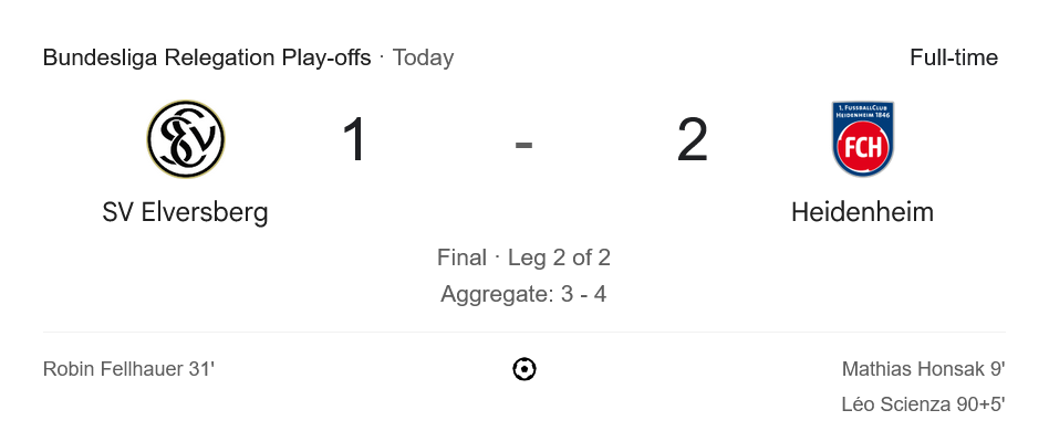 หลังจากบทสรุปในเพลย์ออฟนี้ ตารางบอล ของทั้งสองทีมจะเข้าสู่ช่วงปิดฤดูกาล เตรียมลุยซีซั่นใหม่ในปี 2025/26 โดยไฮน์เดนเฮลม์จะต้องกลับไปวางแผนปรับทีมในบุนเดสลีกา ส่วนเอลเวอร์เบิร์กเตรียมเสริมแกร่งเพื่อลุ้นเลื่อนชั้นอีกครั้งในฤดูกาลหน้า