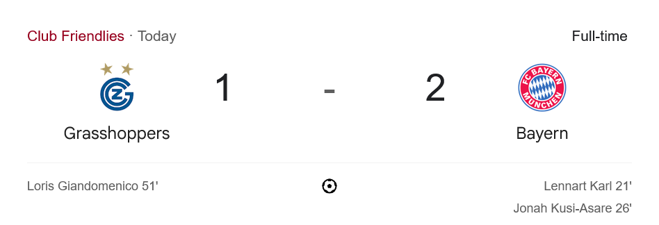 แม้เป็นเพียงเกมกระชับมิตร แต่ชัยชนะนัดนี้ช่วยเพิ่มความมั่นใจให้บาเยิร์นก่อนลงสนามใน DFL ซูเปอร์คัพ กับสตุ๊ตการ์ท และเปิดซีซั่นบุนเดสลีกาพบไลป์ซิก ส่วนกราสฮ็อปเปอร์ต้องเร่งแก้เกมรับก่อนศึกสวิส ซูเปอร์ลีก นัดสำคัญกับวินเตอร์ทูร์