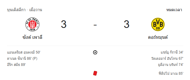 - จบเกม: ซังต์ เพาลี เสมอ ดอร์ทมุนด์ 3-3