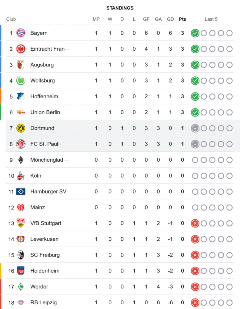 โปรแกรม ตารางบอล นัดต่อไป ดอร์ทมุนด์จะบุกไปเยือนไฮเดนไฮม์ในวันที่ 13 กันยายน ส่วนซังค์ เพาลีมีคิวบุกเยือนฮัมบูร์กในวันที่ 30 สิงหาคม ก่อนกลับมาเปิดบ้านดวลเอาก์สบวร์ก ถือเป็นเกมทดสอบสำคัญสำหรับทั้งสองทีม