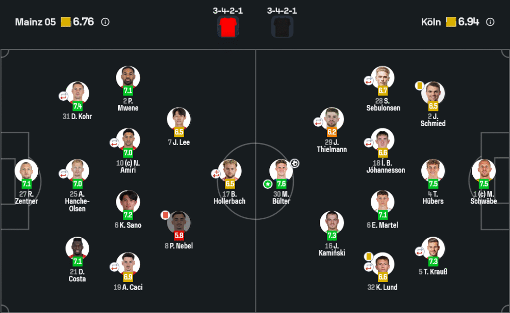 หากมองในมุม วิเคราะห์บอล เกมนี้ ไมนซ์พยายามใช้ความดุดันและจำนวนโอกาสยิงถึง 19 ครั้ง แต่การเข้าทำไม่เฉียบคมและเจอปัญหาหลังจากเสียผู้เล่นไปหนึ่งคน ตรงข้ามกับโคโลญจน์ที่แม้จะยิงน้อยกว่าเพียง 12 ครั้ง แต่ใช้การตั้งรับแน่นและรอจังหวะสวนกลับได้อย่างมีประสิทธิภาพ การเปลี่ยนตัวของโคโลญจน์โดยการส่งลูก้า วาลด์ชมิดท์และฟลอเรียน ไคนซ์ลงมาช่วยปั้นเกม ทำให้ทีมได้ความหลากหลายและสามารถปิดเกมด้วยการยิงในช่วงท้ายได้สำเร็จ