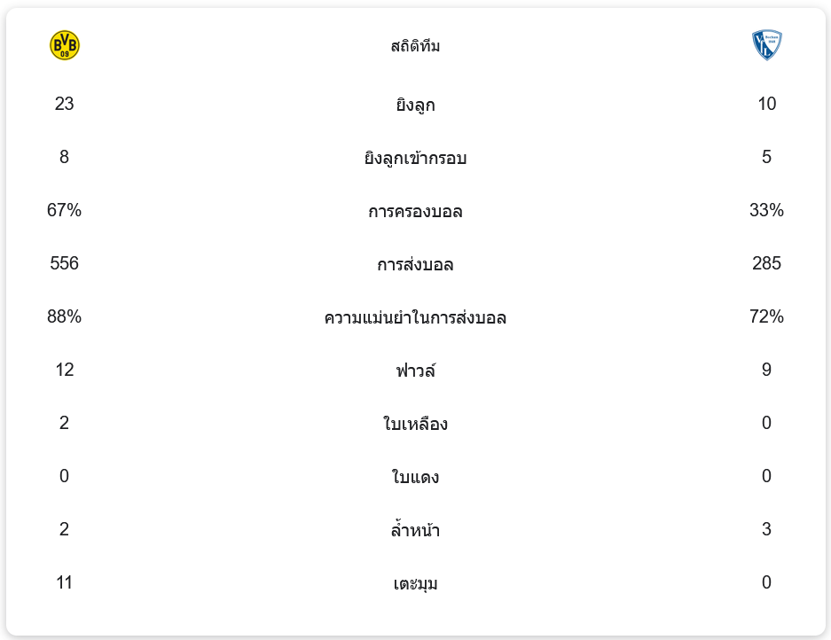 ครึ่งแรก: โบคุ่มช็อกดอร์ทมุนด์ด้วยการนำ 2-0 ก่อนดอร์ทมุนด์ตีคืน 1 ลูก