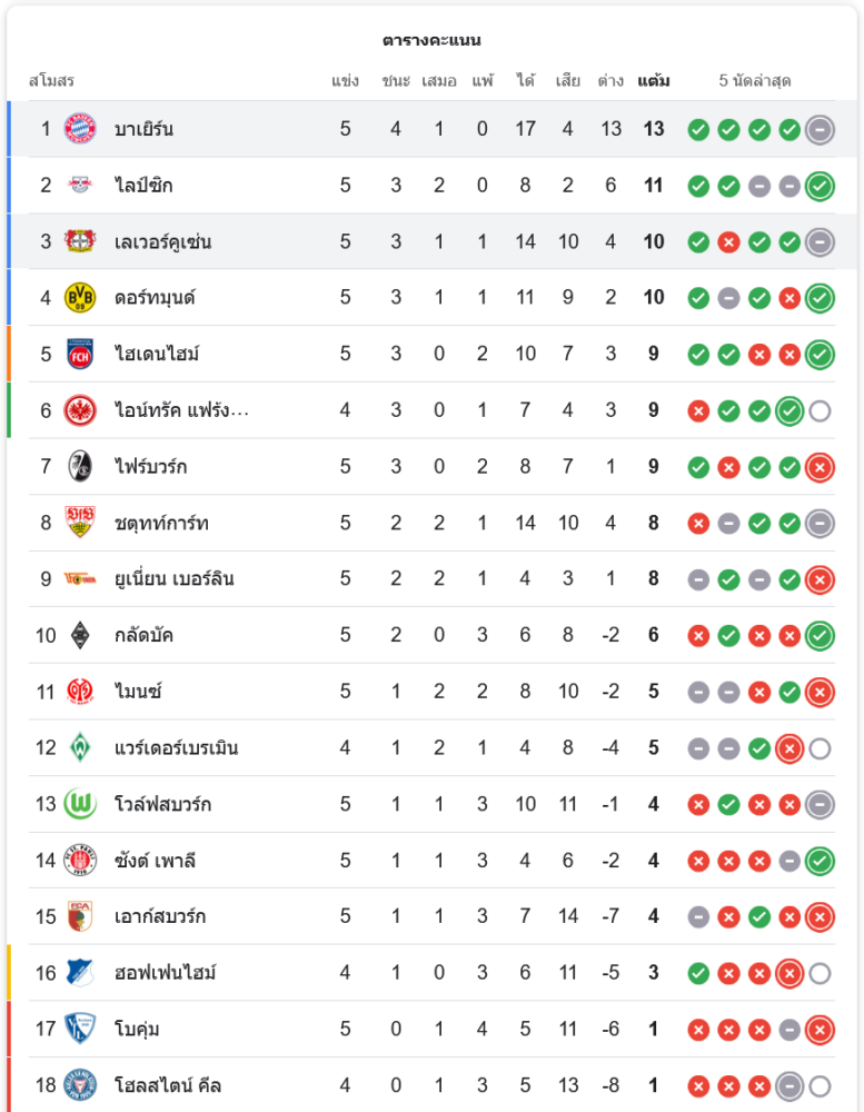 ผลบอลบุนเดสลีกา 2024 ระหว่าง ทีมบาเยิร์น มิวนิค vs ทีมไบเออร์ เลเวอร์คูเซิน วันนี้ 29/9/67 ดูบอลย้อนหลัง คลิปไฮไลท์ ดูบอลบุนเดสลีกา 2024
