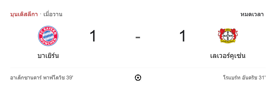 การแข่งขันบุนเดสลีกา 2024 ที่ทุกคนเฝ้ารอคอยระหว่าง บาเยิร์น มิวนิค กับ ไบเออร์ เลเวอร์คูเซิน สิ้นสุดลงด้วยการแบ่งแต้มกันไปด้วยสกอร์ 1-1 แม้ว่าฝั่งเจ้าบ้านจะครองเกมได้มากกว่า แต่ก็ไม่สามารถคว้าชัยชนะกลับไปได้
