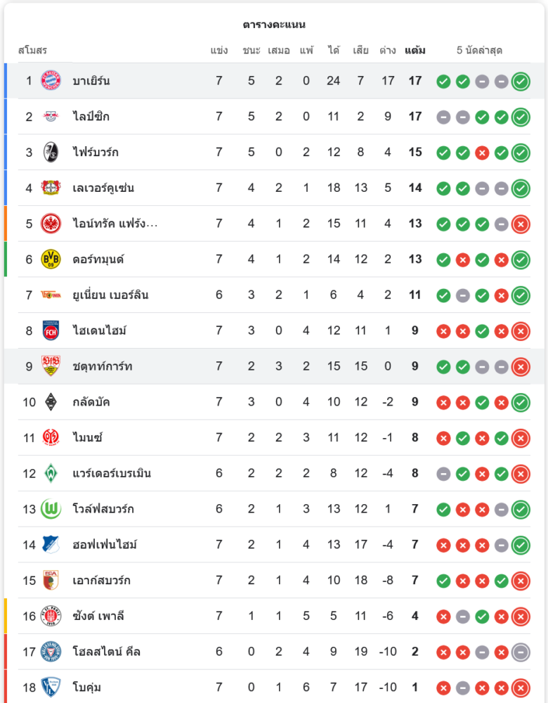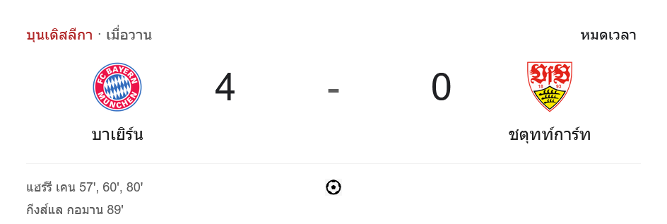 ตารางคะแนนบุนเดสลีกา 2024 ระหว่าง บาเยิร์น มิวนิค 4-0 สตุ๊ตการ์ต