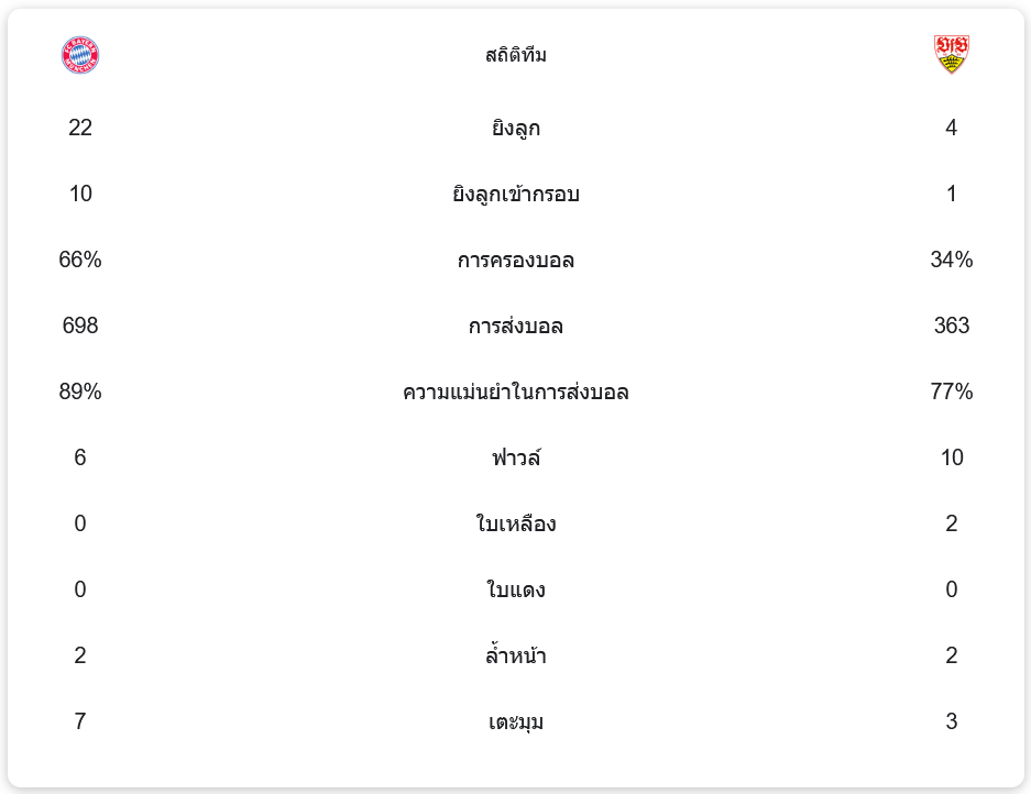 สถิติบุนเดสลีกา 2024 ระหว่าง บาเยิร์น มิวนิค 4-0 สตุ๊ตการ์ต