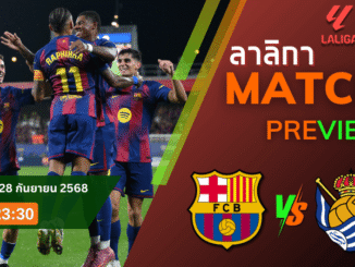 ศึกใหญ่ลาลีกา บาร์เซโลน่า ปะทะ เรอัล โซเซียดาด วิเคราะห์เจาะลึกครบทุกมุม ทั้งสถิติ ความพร้อม ฟอร์มล่าสุด และฟันธงสกอร์ พร้อมอัปเดต ตารางแข่งบอล และ ราคาบอล แบบจัดเต็มจาก บ้านกีฬา