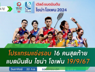 ดูแบดมินตัน ไชน่า โอเพ่น 2024 ของนักกีฬาไทย พร้อมโปรแกรมแข่งรอบ 16 คนสุดท้าย 19/9/67 (ลิ้งก์ดูสด)