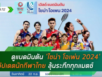 ติดตามผลและโปรแกรมการแข่งขัน แบดมินตันไชน่า โอเพ่น 2024 ของนักกีฬาไทย พร้อมลิ้งก์ดูสดรอบ 16 คนสุดท้าย วันที่ 19 กันยายน 2567