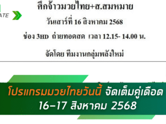 โปรแกรมมวยไทยวันนี้ จัดเต็มคู่เดือด 16-17 สิงหาคม 2568