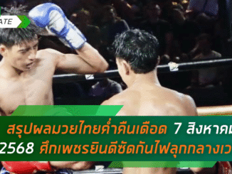 เจาะลึก! สรุปผลมวยไทยค่ำคืนเดือด 7 สิงหาคม 2568 ศึกเพชรยินดีซัดกันไฟลุกกลางเวที