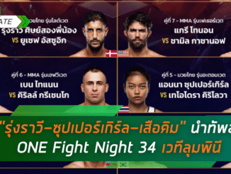 รุ่งราวี-ซุปเปอร์เกิร์ล-เสือคิม นำทัพไทยลุยศึก ONE Fight Night 34 วันเสาร์นี้ ดูมวยไทยสดผ่าน BANKEELA พร้อมเช็กผลมวยไทยที่ บ้านกีฬา