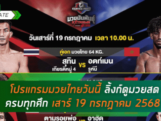โปรแกรมมวยไทยวันนี้ระเบิดความมัน! ลิ้งก์ดูมวยสดครบทุกศึก เสาร์ 19 กรกฎาคม 2568