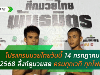 โปรแกรมมวยไทยวันนี้ 14 กรกฎาคม 2568 บ้านกีฬาอัปเดตตารางมวยไทยพร้อมลิ้งก์ดูมวยสด ครบทุกคู่ทุกเวที เดือดทุกไฟต์ พร้อมรายงานผลมวยไทยหลังเกม