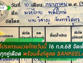 โปรแกรมมวยไทยวันนี้ 16 กรกฎาคม 2568 จัดเต็มทุกคู่เดือด พร้อมลิ้งก์ดูมวยสด BANKEELA