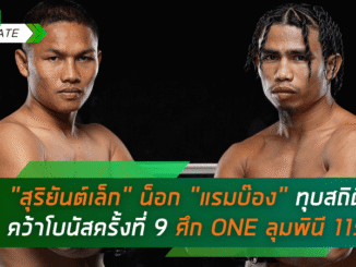 สุริยันต์เล็ก โชว์โหดน็อก แรมบ๊อง ย้ำแค้นคว้าโบนัสครั้งที่ 9 ศึก ONE ลุมพินี 115 แจกโบนัสรวมกว่า 7 แสนบาท เช็กผลมวยไทยเมื่อคืน พร้อมช่องทางดูมวยไทย BANKEELA ได้ที่ บ้านกีฬา