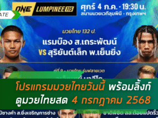 โปรแกรมมวยไทยวันนี้ 4 กรกฎาคม 2568 พร้อมลิ้งก์ดูมวยสดครบทุกเวที ทั้ง ONE ลุมพินี, ไทยไฟท์, RWS และเพชรยินดี ดูมวยไทยออนไลน์แบบจัดเต็มที่ BANKEELA