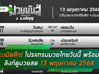 ระเบิดศึก! โปรแกรมมวยไทยวันนี้ พร้อมลิงก์ดูมวยสด 13 พฤษภาคม 2568 มวยมันส์สนั่นรังสิต – แฟนพันธุ์แท้ห้ามพลาด