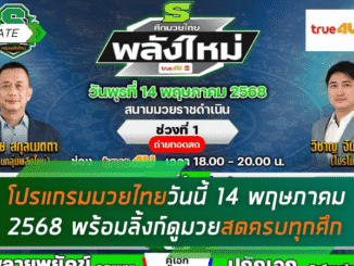 รวมโปรแกรมมวยไทยวันนี้ 14 พฤษภาคม 2568 พร้อมลิ้งก์ดูมวยสดทุกคู่ ศึกมวยไทยพลังใหม่ เวทีราชดำเนิน ถ่ายทอดสดผ่าน True4U และ GOSPORT ดูมวยไทยออนไลน์ครบผ่าน BANKEELA ได้ที่ บ้านกีฬา