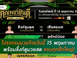 โปรแกรมมวยไทยวันนี้ 15 พฤษภาคม 2568 พร้อมลิ้งก์ดูมวยสด ครบทุกศึกใหญ่!