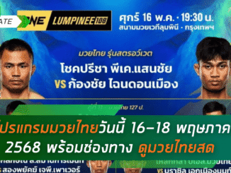 ครบทุกคู่! โปรแกรมมวยไทยวันนี้ 16-18 พฤษภาคม 2568 พร้อมช่องทาง ดูมวยไทยสด ครบทุกศึกดัง จัดเต็มที่นี่