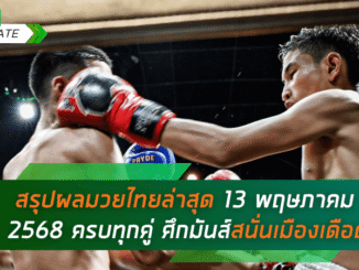เช็กผลมวยไทยล่าสุด 13 พ.ค. 2568 ครบทุกคู่จากศึกมวยมันส์สนั่นเมือง พร้อมฟอร์มเด่นทั้งน็อก-แต้ม ดูมวยไทยย้อนหลังผ่าน BANKEELA ติดตามข่าวมวยไทยเข้มข้นได้ที่ บ้านกีฬา