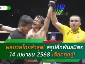 สรุปผลมวยไทยล่าสุด 14 เมษายน 2568 จากศึกมวยไทยพันธมิตร บวกกันมันส์ทั้งรายการ มีทั้งน็อกยกแรก-เบียดชนะคะแนน ครบทุกคู่ พร้อมอัปเดตผลมวยไทยเมื่อคืน