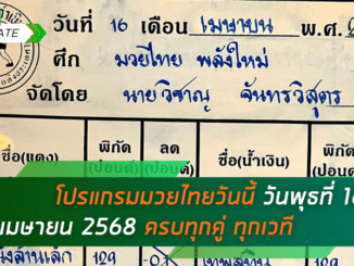เช็กด่วน! โปรแกรมมวยไทยวันนี้ พร้อมลิงก์ดูมวยสด วันพุธที่ 16 เมษายน 2568 ครบทุกคู่ ทุกเวที