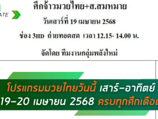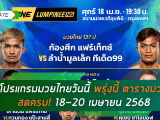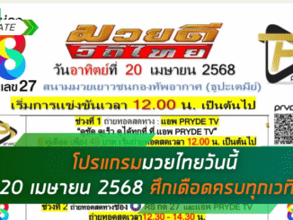 โปรแกรมมวยไทยวันนี้ 20 เมษายน 2568 ครบทุกศึก มวยไทย 7 สี, ONE ลุมพินี, ไทยไฟท์, ศึกเกียรติเพชร พร้อมลิงก์ดูมวยสด