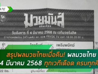 สรุปผลมวยไทยเมื่อคืน! ผลมวยไทย 4 มีนาคม 2568 ทุกเวทีเดือด ครบทุกศึกใหญ่