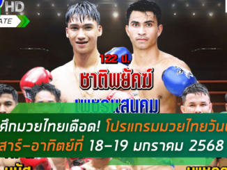 ดูมวยวันนี้ ศึกมวยไทยเดือด! โปรแกรมมวยไทยวันนี้ ลิ้งก์ดูมวยสด เสาร์-อาทิตย์ที่ 18-19 มกราคม 2568