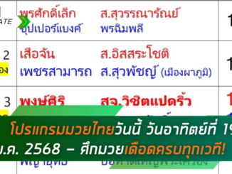 ดูมวยไทยวันนี้ วันอาทิตย์ที่ 19 มกราคม 2568 – ศึกมวยเดือดครบทุกเวที!