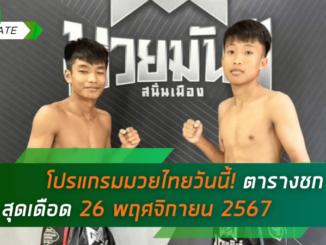 ดูมวยไทยวันนี้ และสุดสัปดาห์ 29 พฤศจิกายน – 1 ธันวาคม 2567 ครบทุกคู่ทุกเวที